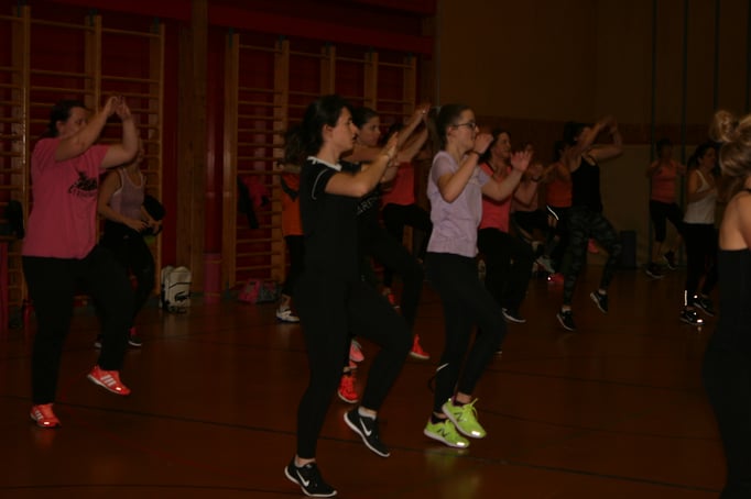Das energievolle Ganzkörpertraining wird zu fetziger Musik ausgeführt und macht gute Laune.