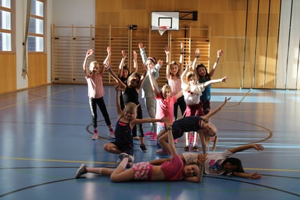 Die Kinder erlernen spielerisch Bewegungsformen zu verschiedenen Rhythmen und Musikrichtungen. Die ganzheitliche Förderung (körperlichen, geistigen und sozialen Kompetenzen) steht somit im Vordergrund dieser Lektion.